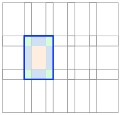 Der orange Bereich ist jeweils nur einmal vorhanden. Der blaue, überlappende Bereich ist „doppelt“ vorhanden und ermöglicht ein lückenloses Zusammenfügen.